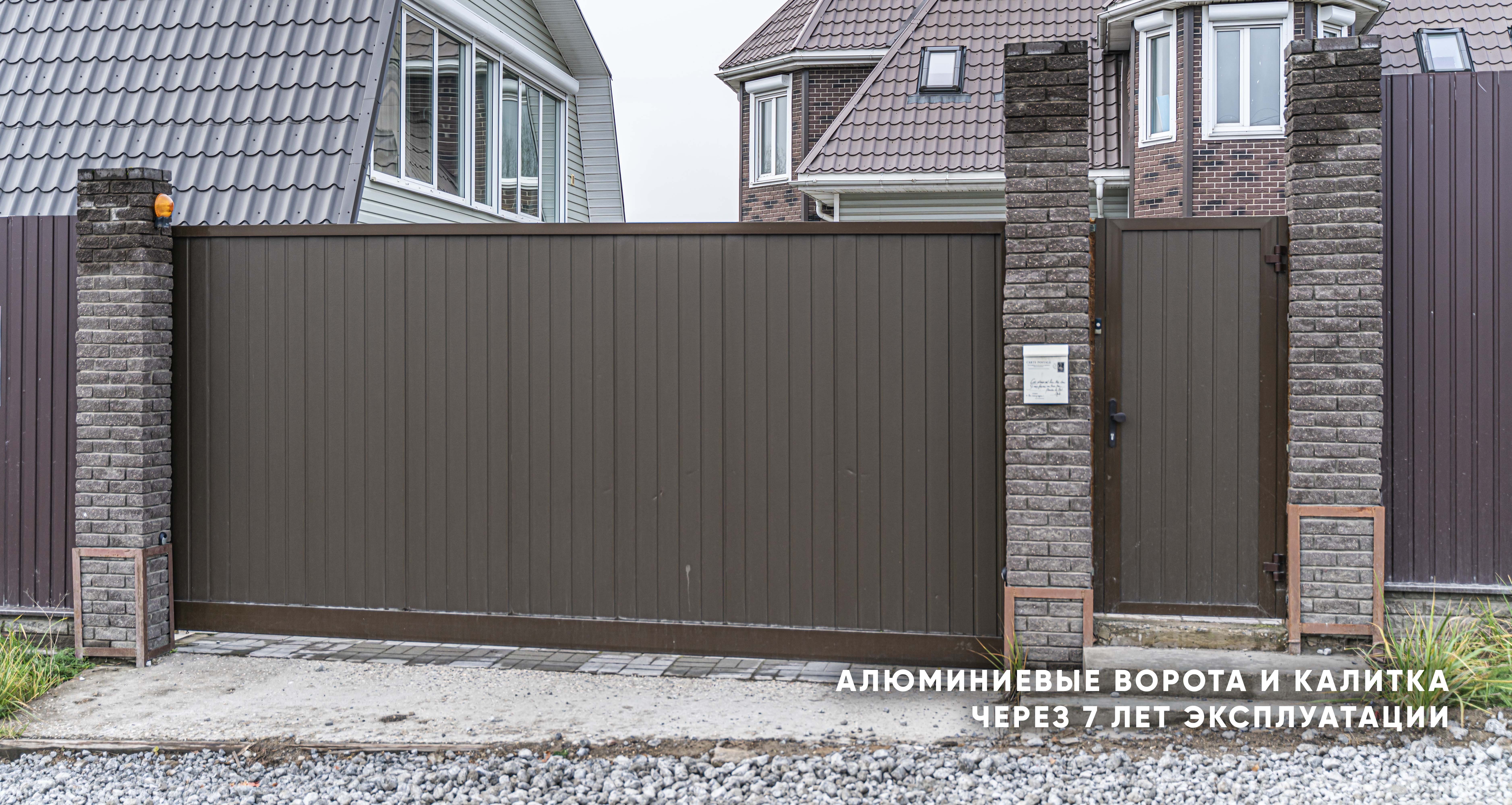 Алюминиевые откатные ворота с автоматической системой управления и калитка, частный дом